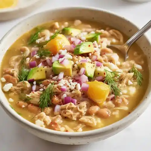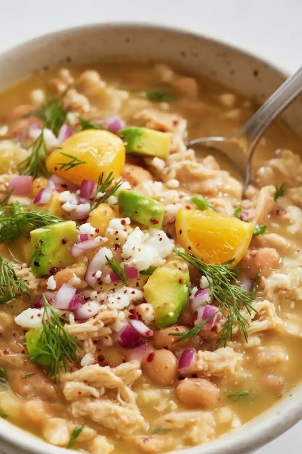 Crockpot White Chicken Chili with Mediterranean Twist