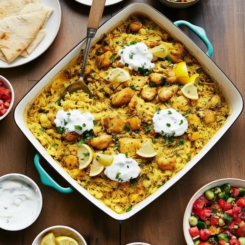 This easy Chicken Tzatziki Rice Bake recipe is a true dump-and-bake solution, combining juicy chicken, creamy tzatziki, and fluffy rice in one comforting dish. Whether you call it a Chicken Tzatziki Rice Casserole or a simple Chicken Tzatziki Rice recipe, this dump-and-bake Chicken Tzatziki with rice delivers big Mediterranean flavor with minimal effort, perfect for stress-free weeknights and Pinterest-worthy dinners.