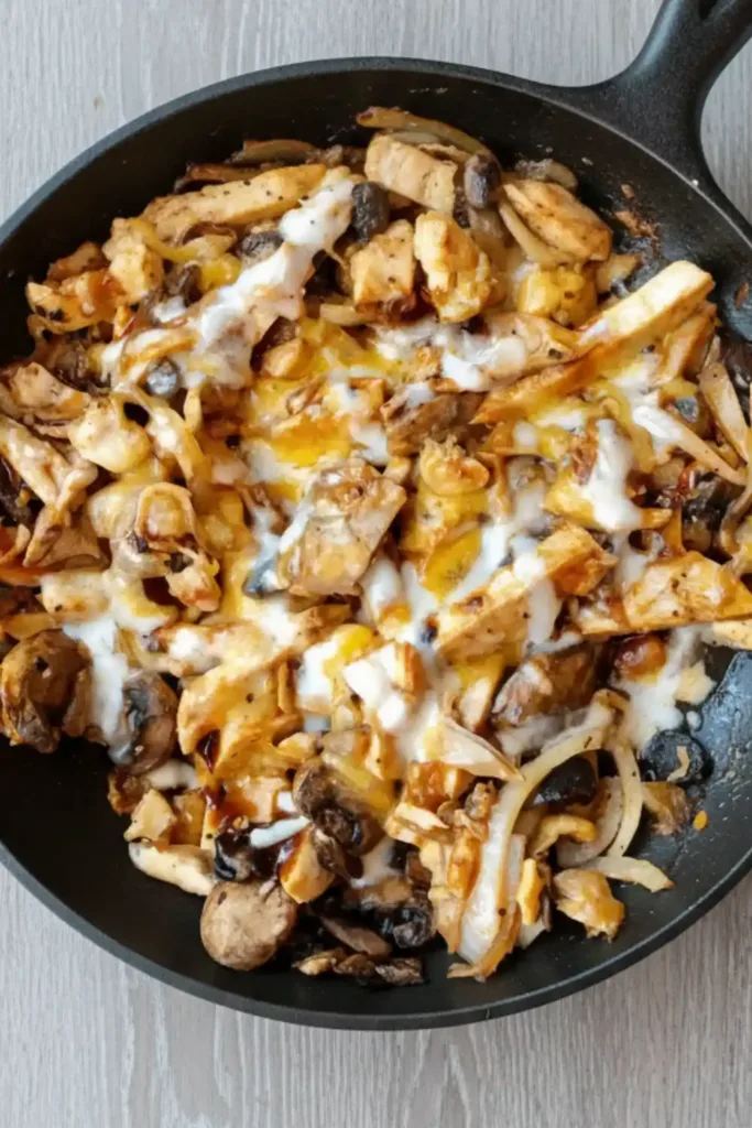 - Top with shredded cheese and cover the skillet for 1-2 minutes or until the cheese has melted.