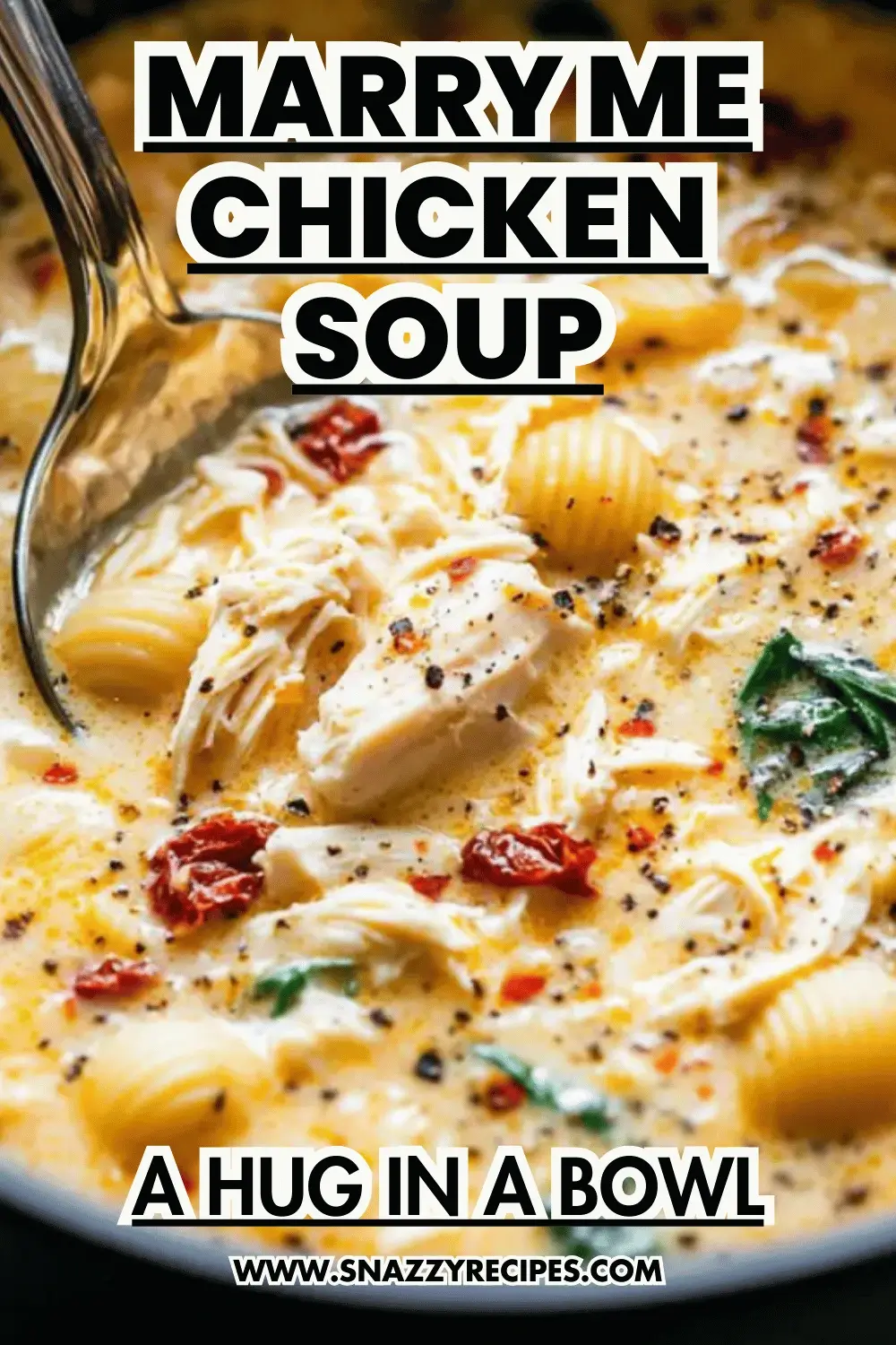 All the creamy, dreamy flavors of Marry Me Chicken, now in a cozy soup. Tender chicken, sun-dried tomatoes, Parmesan, and pasta simmer in a velvety broth for true love at first sip.