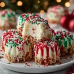 These no-bake Christmas cheesecake bites are a crowd-pleaser. They are creamy, sweet, and decorated to capture the holiday spirit. Each bite offers a smooth texture that melts in your mouth, combined with a crunchy graham cracker crust.