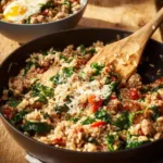 One-Pan Spicy Italian Sausage and Rice is a delightful and hearty dish that combines the robust flavors of spicy Italian sausage with nutritious ingredients like brown rice and fresh spinach. This recipe’s essence lies in its simplicity and convenience, requiring only one pan for cooking. The blend of flavors creates a comforting meal that appeals to both families and busy individuals alike.