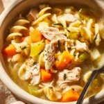 This turkey noodle soup is easy to make and packed with wholesome ingredients. It’s the perfect cozy dish for chilly evenings or busy weeknights. The combination of tender turkey, egg noodles, and vegetables creates a delightful bowl that appeals to all ages.