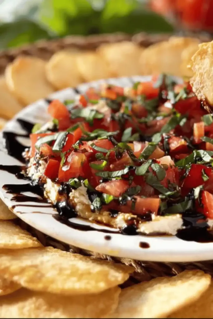 Making Bruschetta Dip is a fantastic choice for several reasons. First, it’s quick and easy to prepare, taking only a few minutes. Second, the combination of creamy cheese, fresh tomatoes, and fragrant basil creates a flavor explosion that is sure to impress your guests. Lastly, it’s versatile and pairs well with various dippers like pita chips, crackers, or baguette slices.