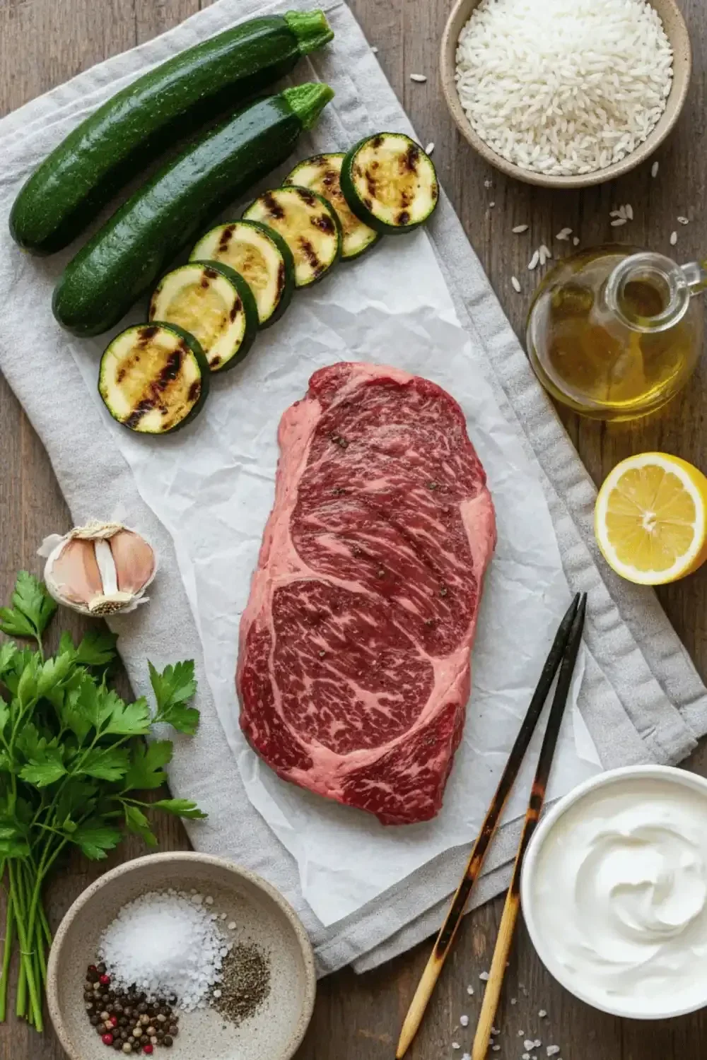 - Prep the Zucchini: While the steak marinates, wash the zucchini and slice them into half-moons. Toss them in a bowl with olive oil, salt, and pepper.